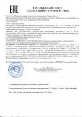 1. Диапазоны измерения преобразуемого входного сигнала 0-1000 В и ±1000 В могут быть только у одноканальных измерительных преобразователей;