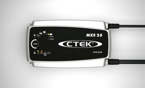 MXS 25 является полностью автоматическим 8-этапным зарядным устройством с зарядным током 25 A для 12 В аккумуляторов емкостью от 40 до 500 А/ч. Зарядное устройство соответствует классу защиты IP44 (использование вне помещений), безопасно для бортового электронного оборудования транспортных средств, не искрит, имеет функцию защиты от перемены полярности и короткого замыкания.